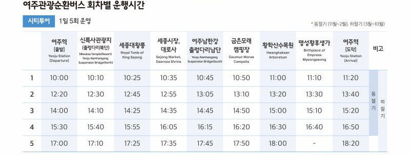 - 티켓 구입처: 여주역 관광안내소 또는 버스 내