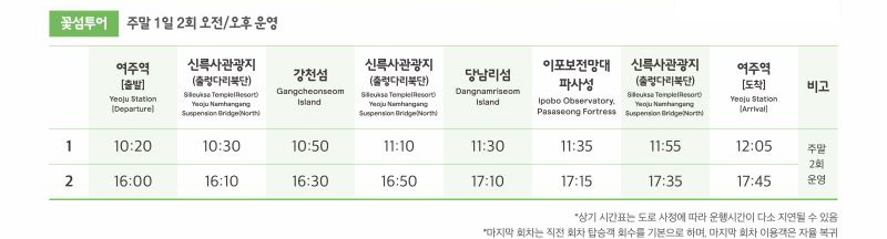꽃섬투어 노선 (주말 한정, 1일 2회 운영)